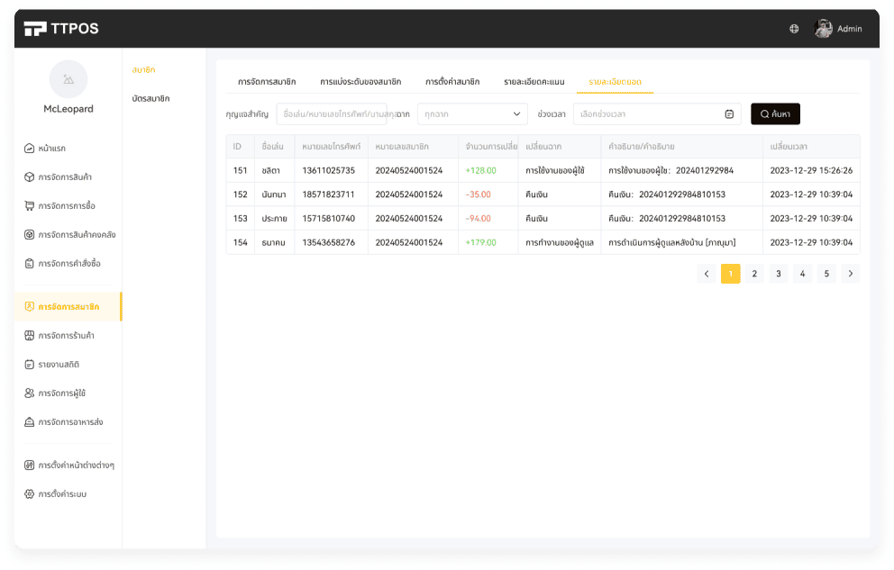 ผ่านฟังก์ชันการจัดการผู้ใช้ที่ทรงพลัง ผู้ขายสามารถดูข้อมูลสมาชิกทั้งหมดได้แบบเรียลไทม์ รวมถึงบันทึกการใช้จ่าย ระดับความกระตือรือร้น เป็นต้น เพื่อทำความเข้าใจความต้องการของสมาชิกอย่างแม่นยำ และทำการตลาดที่เป็นส่วนตัว การจัดการข้อมูลสมาชิกแบบครอบคลุมช่วยให้ผู้ขายตัดสินใจในการดำเนินงานได้ดีขึ้น และเพิ่มประสิทธิภาพในการทำการตลาด